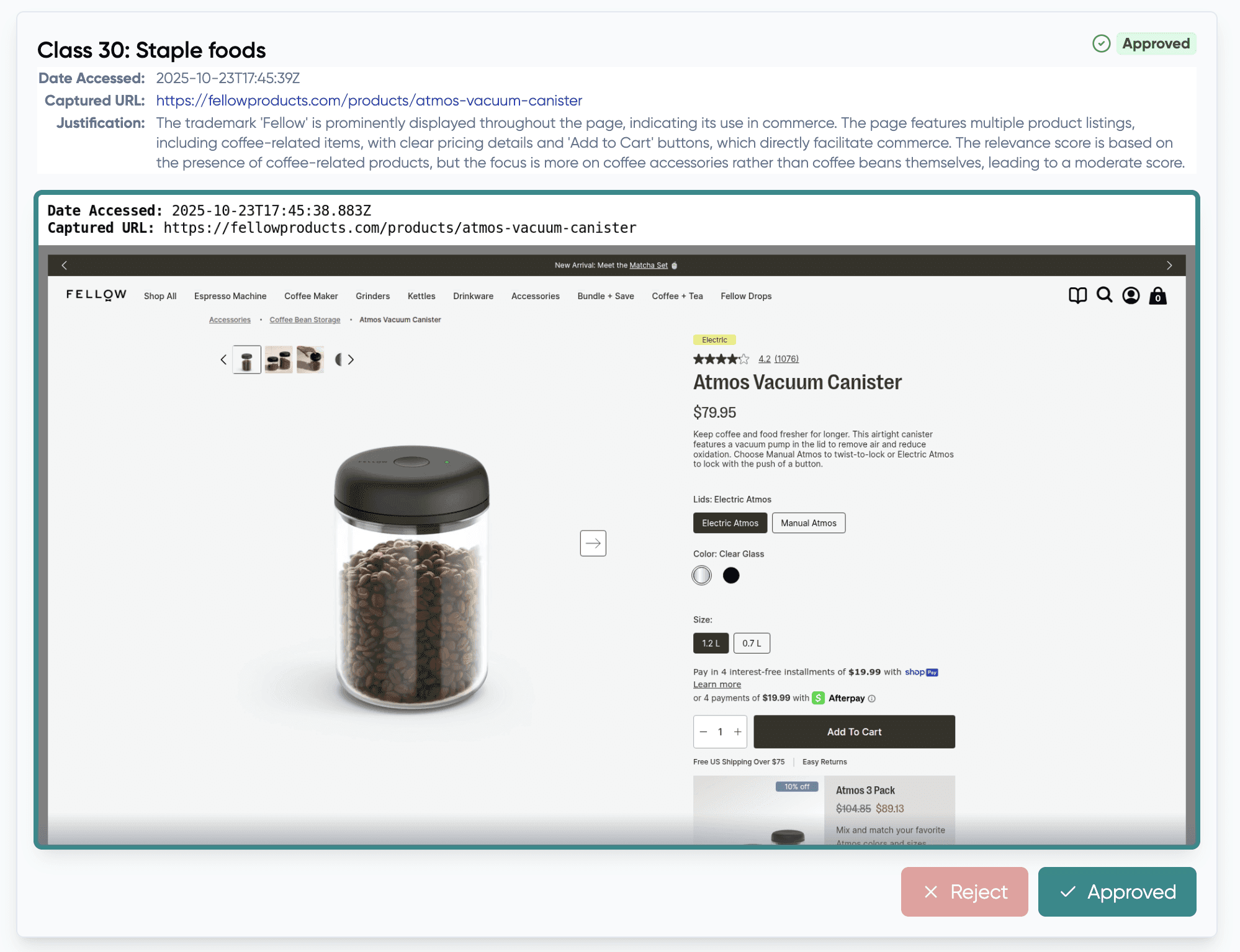 Stencil automatically finds and preserves specimens with a visible URL and capture time stamp for USPTO-ready submissions.